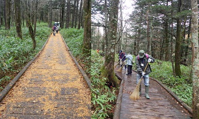 近年はゴミの持ち帰りも浸透し、美しい上高地になっていますが、美しくする会の活動は毎年5月から10月まで隔週で、清掃だけでなく歩道の維持管理や外来植物除去や支障木の整理など、活動の幅を広げて続いています。