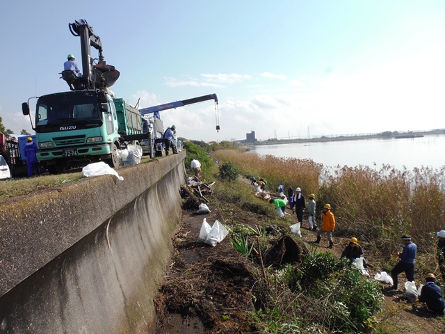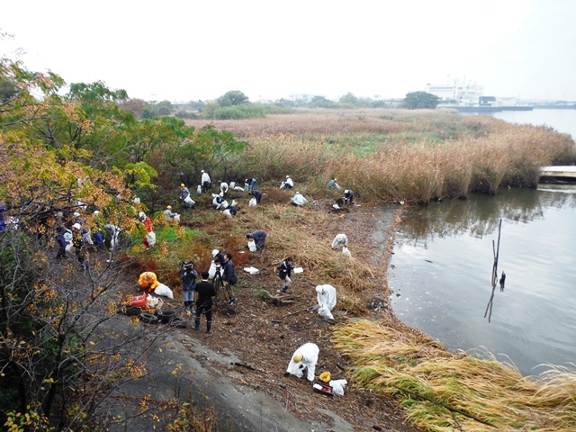 同じ保護区内の庄内川や新川護岸では、毎年2回、多数の一般市民が参加する