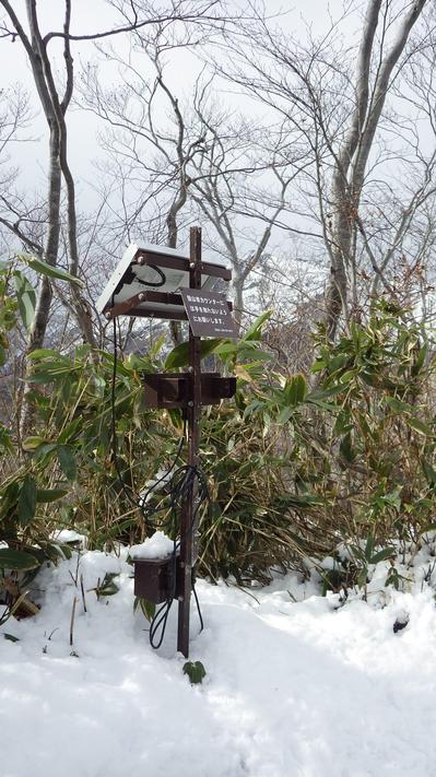 ↑天神尾根の登山者カウンターは熊穴沢避難小屋の近くに設置していました。前を人が通るとセンサーが反応してカウントする方式です。かじかむ手で部品を解体し、ザックに収納した頃には雪が降り始めました。