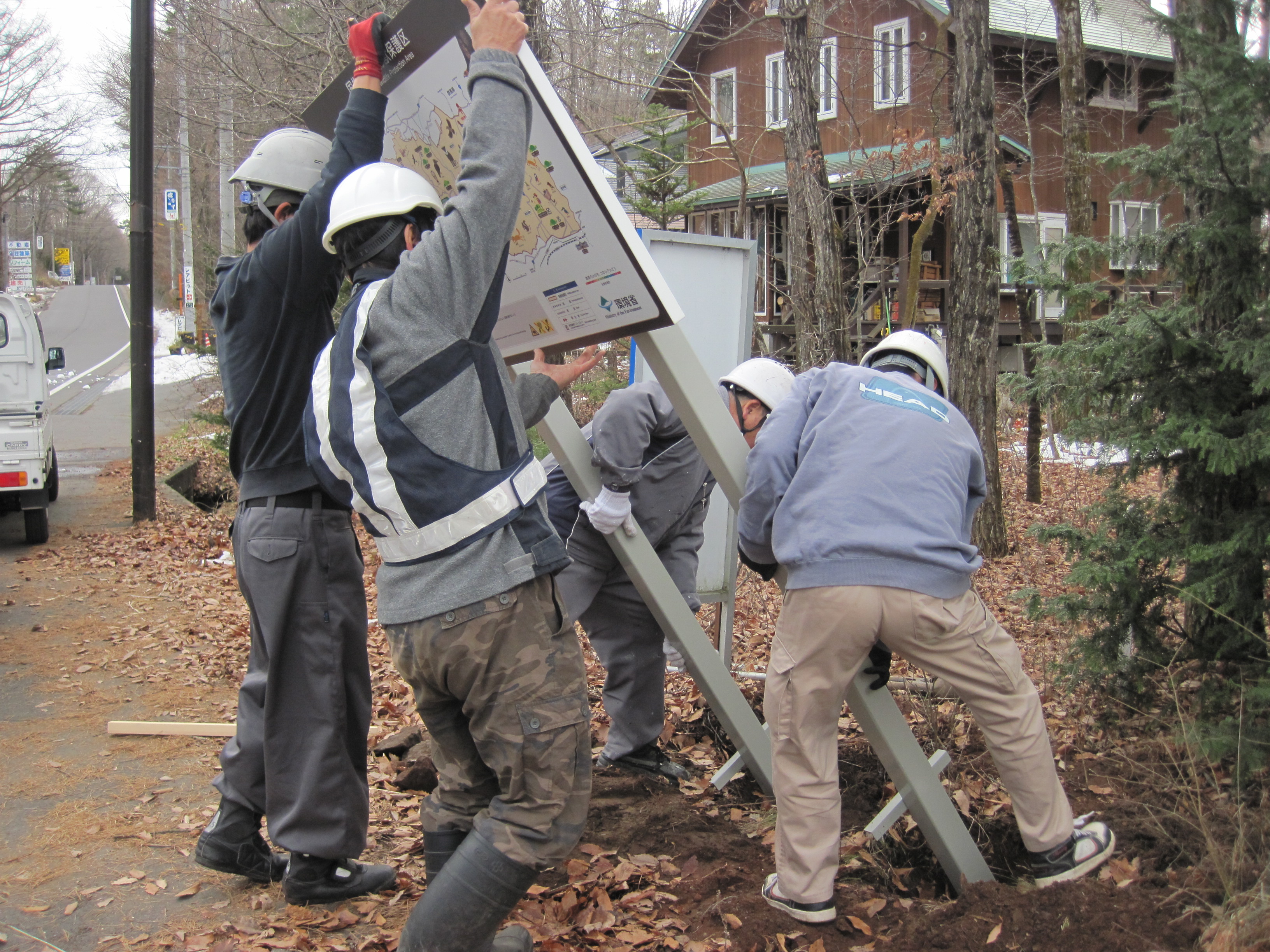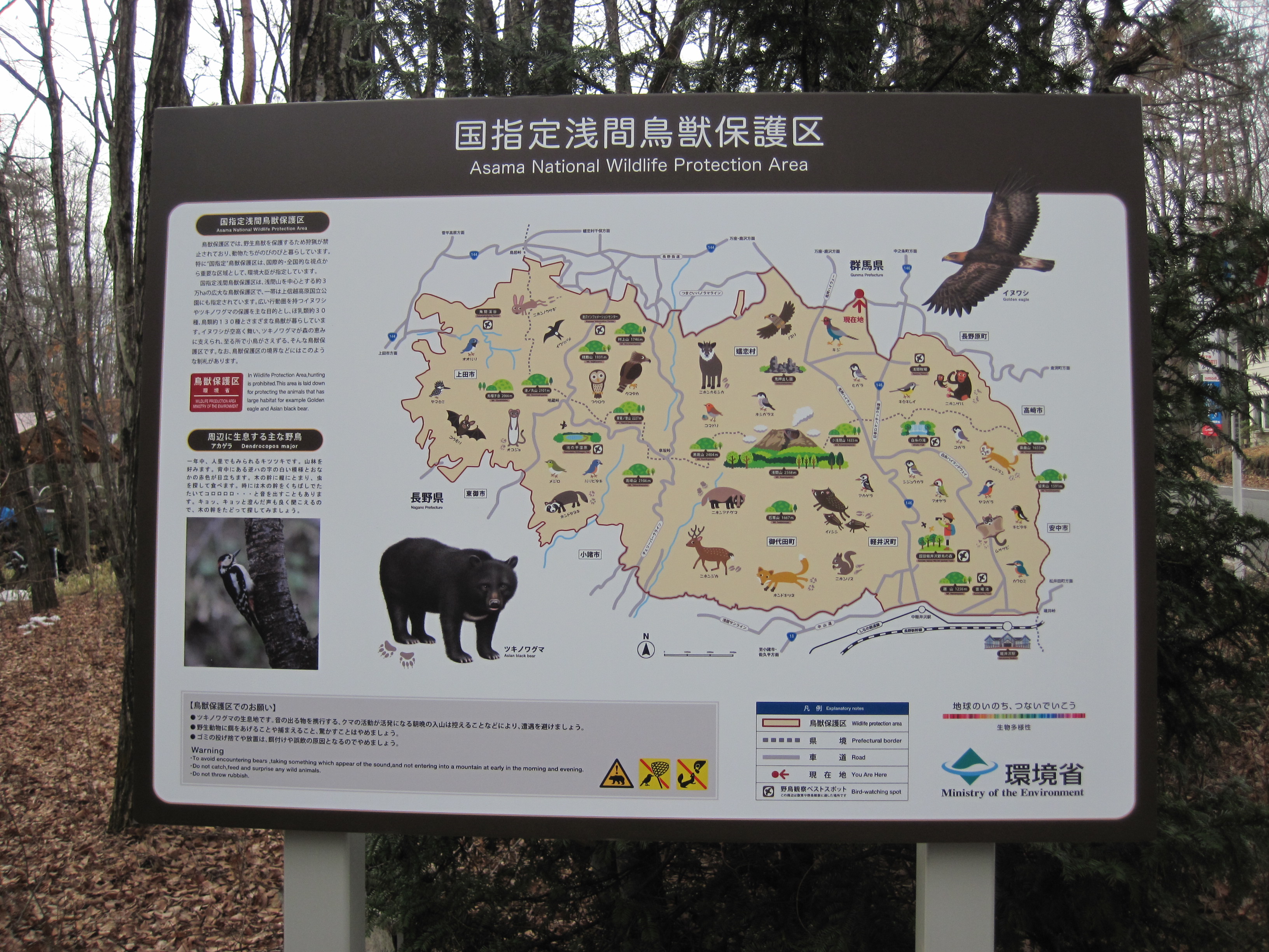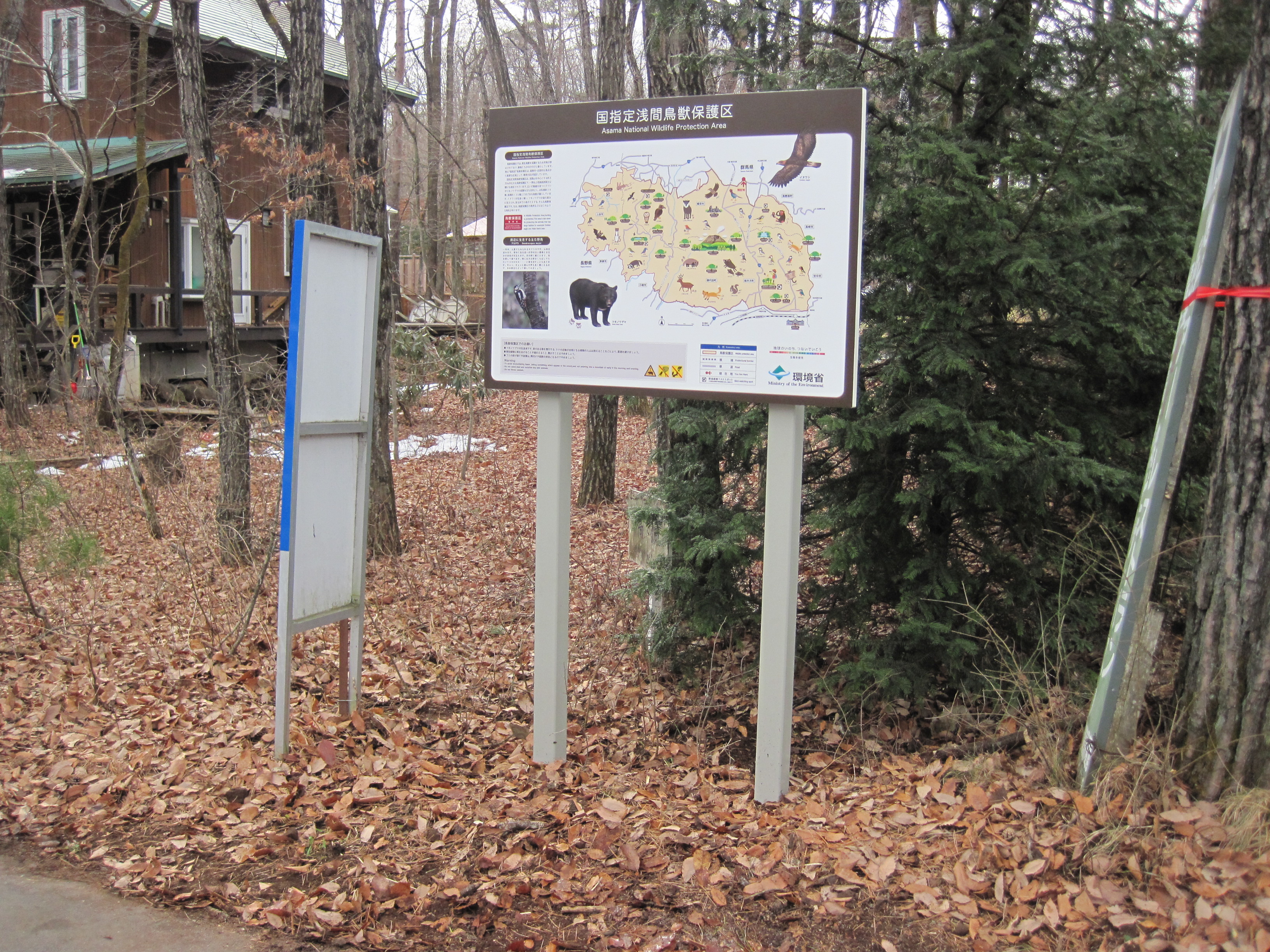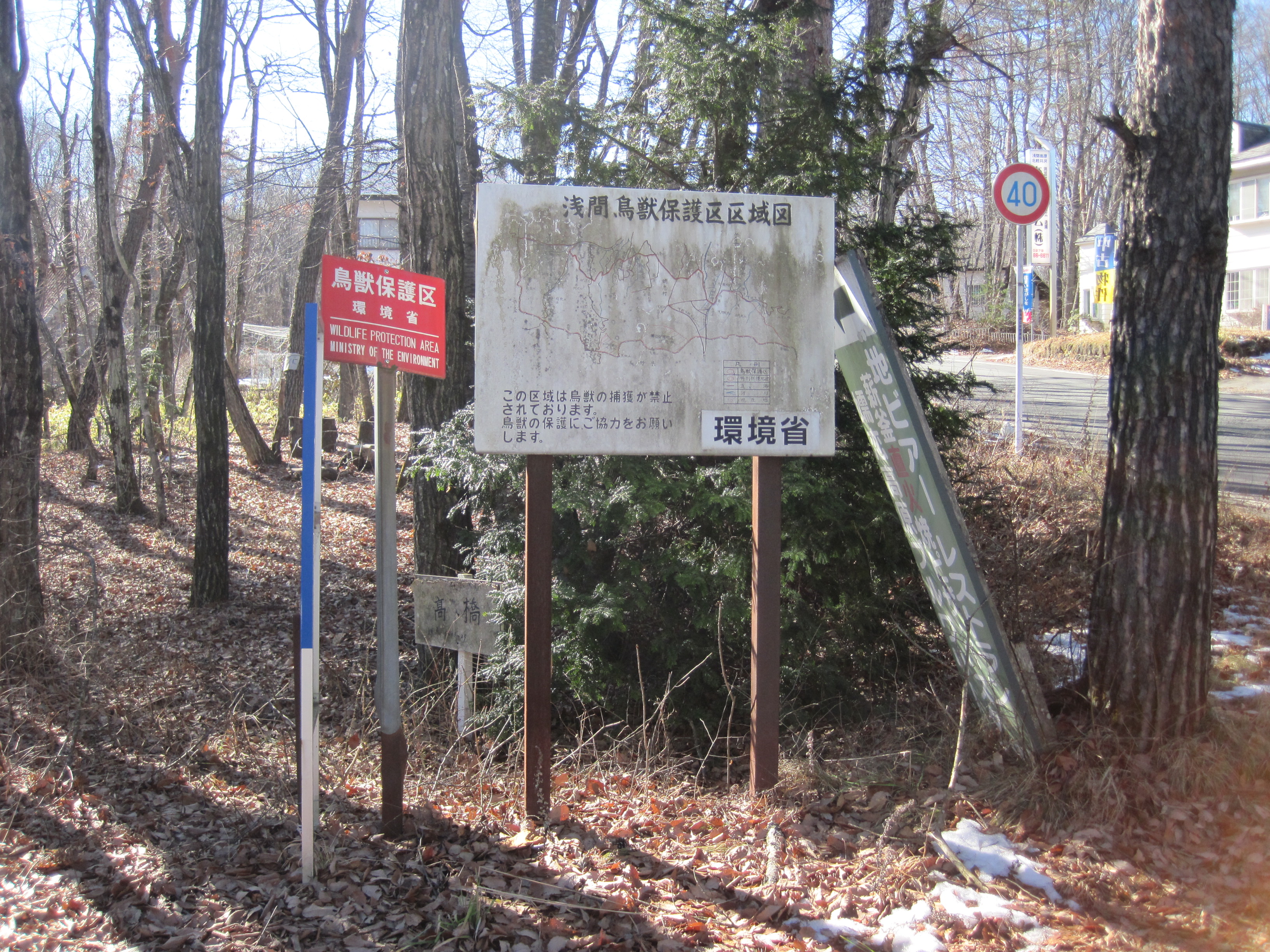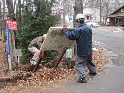 そんな国指定浅間鳥獣保護区で、ついこの間、標識のリニューアル工事を行いました。
