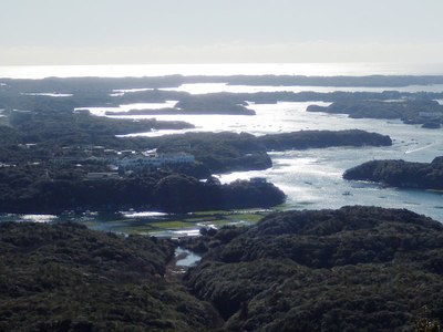 太陽の光を反射して英虞湾が美しく輝いて見えました。