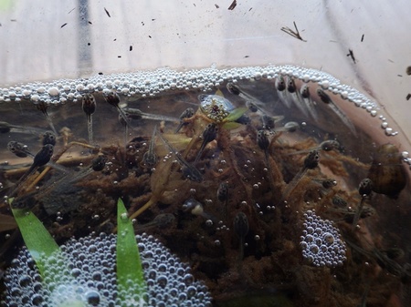 発生が進むと降雨の刺激で卵からオタマジャクシが脱出します。