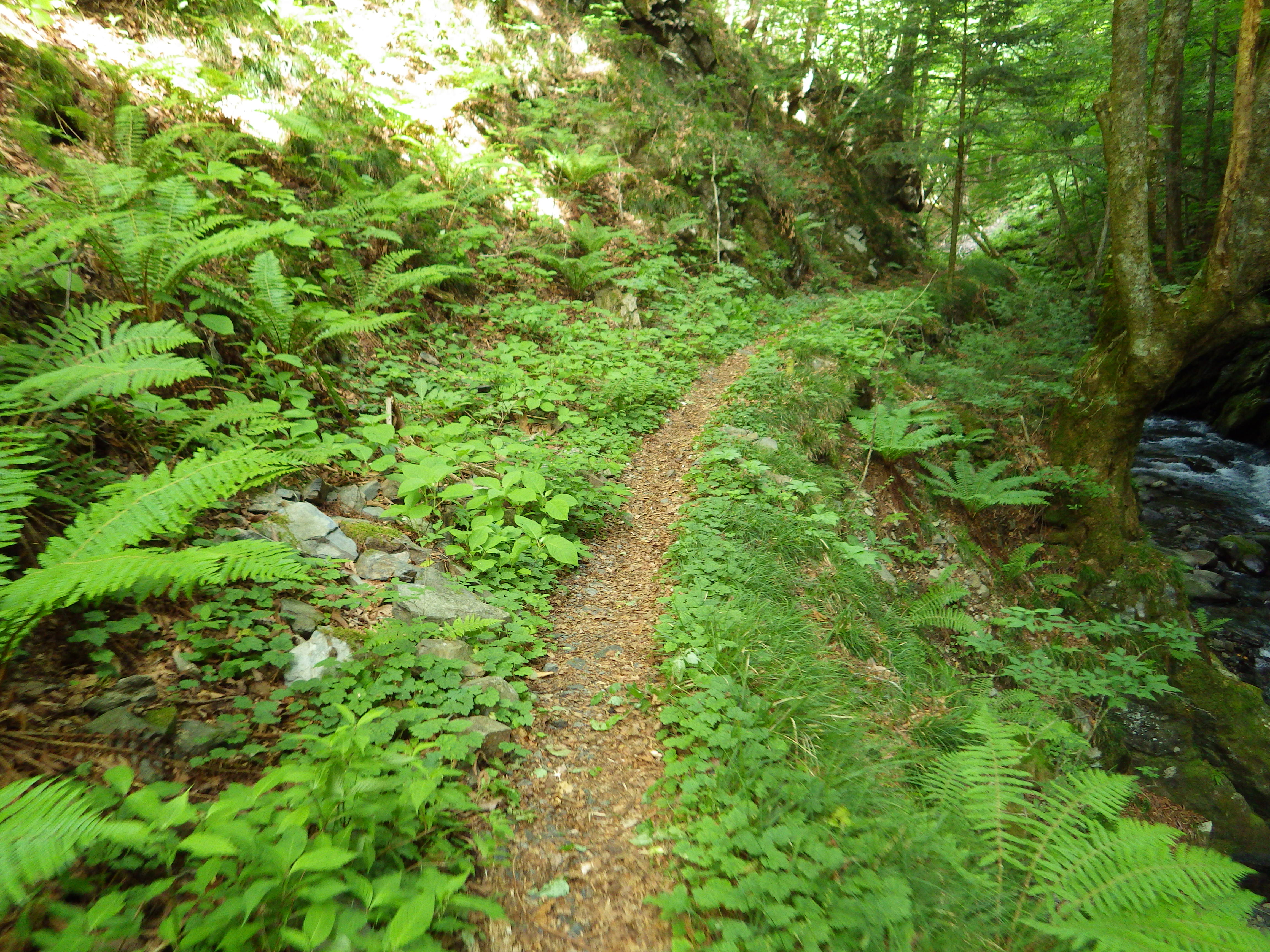 【沢沿いの静かな道】山中にひっそりと続く道です。