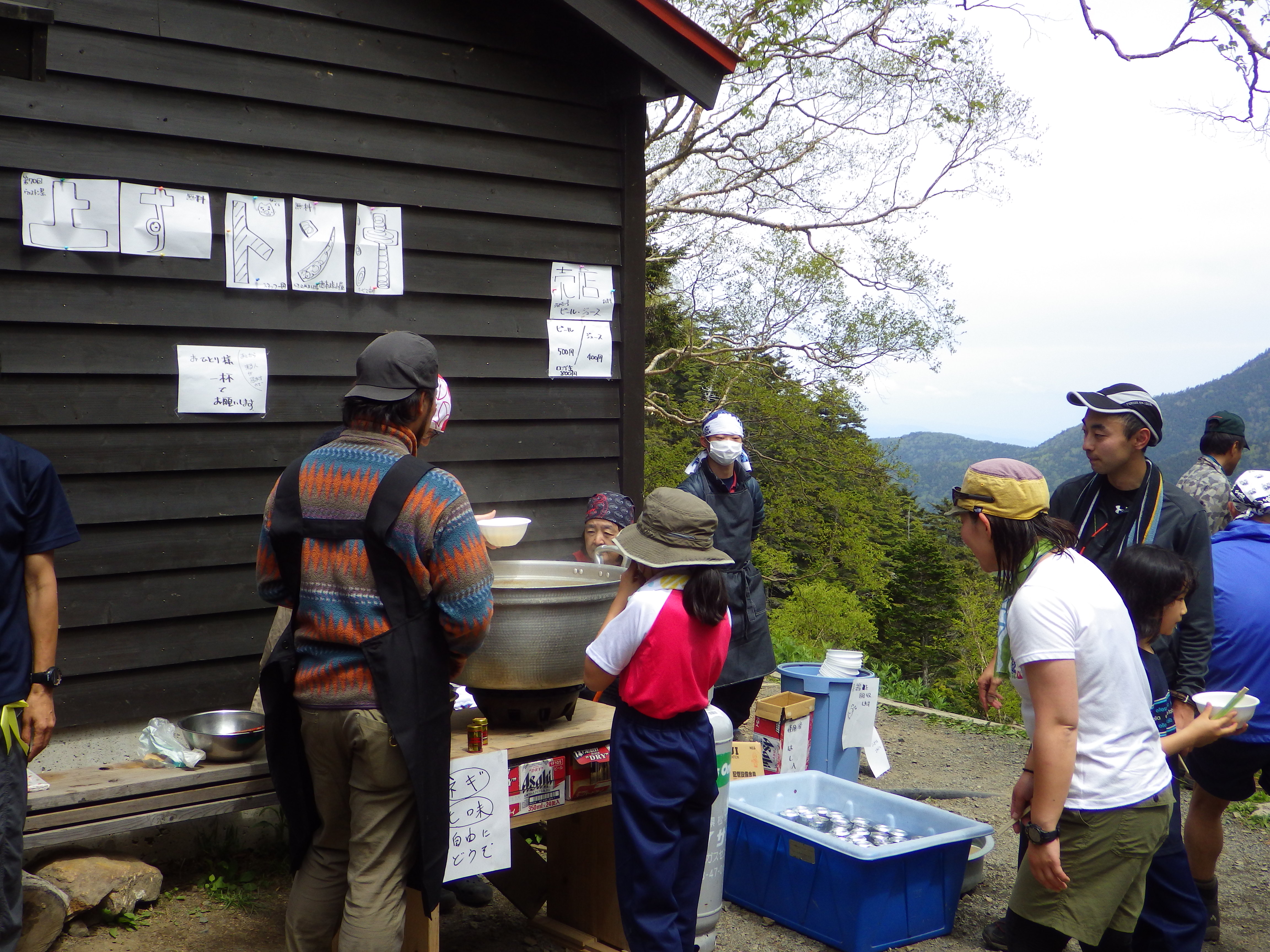 【徳本峠の小屋では豚汁が振る舞われました】上すトン汁 だそうです(ウエストンさんとかけて)