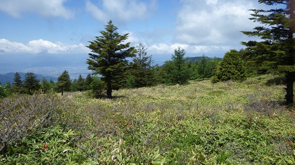 <同じ日に撮影した、標高の高い所のレンゲツツジ群落。ほとんど花が咲いていないので、どこにレンゲツツジがあるのか写真では分からないかもしれません。花が咲くとどういう景色になるか楽しみです。