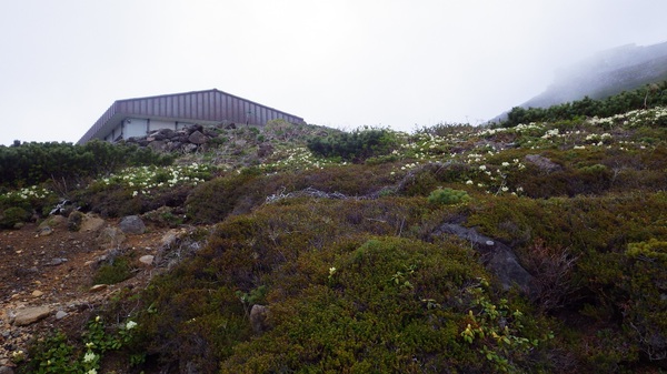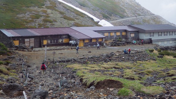 肩ノ小屋前では剣ヶ峰登山等を楽しまれた方々が休憩されていました。