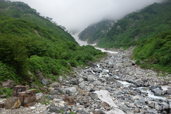 6月22日は、白馬大雪渓(はくばだいせっけい、しろうまだいせっけい)の下流端に当たる白馬尻(はくばじり)付近(長野県白馬村)を歩きました。