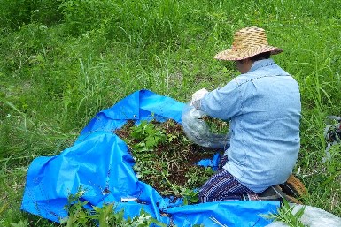 例年は花が咲く7月に行っていますが、暑さや周りの草が生い茂って作業が大変になることから