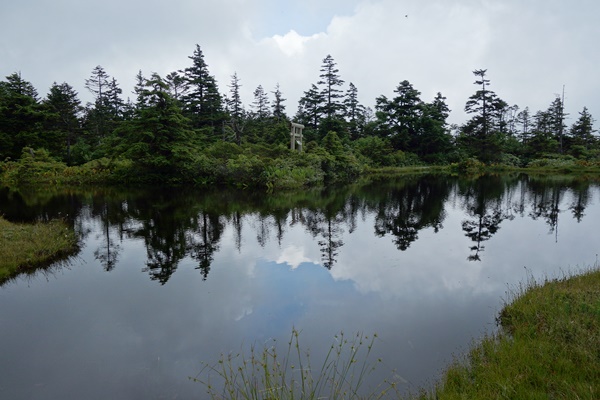 <「水」に関係のあるものというより水そのものが焼額山山頂にあります。「稚児池(ちごいけ)」と呼ばれています。山頂なので、池の水は、雪溶け水か雨水がもとになっているはずですが、積雪が少なくても、日照りが続いても、満々と水をたたえているのだそうです。>