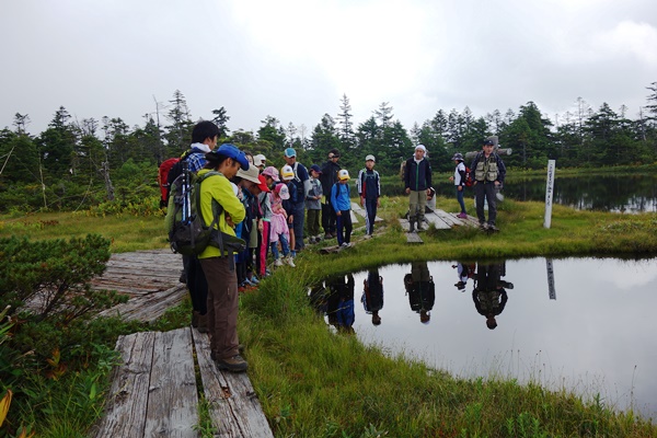 イワナを観察した後は「焼額山(やけびたいやま)」の山頂を目指します。山頂で「水」に関係のあるものって何でしょう?