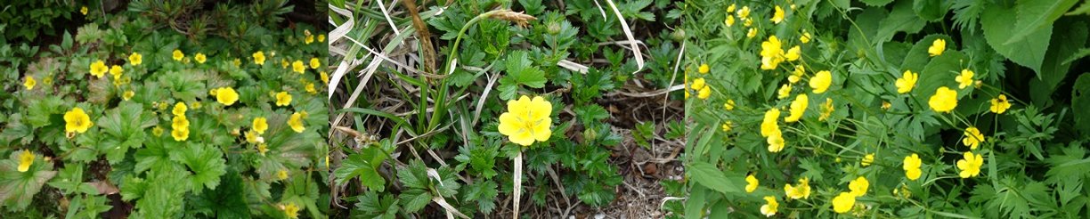 <左:ミヤマダイコンソウ、中:ミヤマキンバイ、右:ミヤマキンポウゲ>