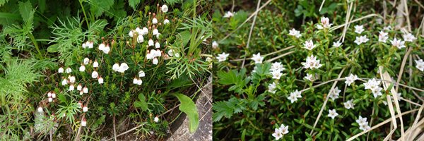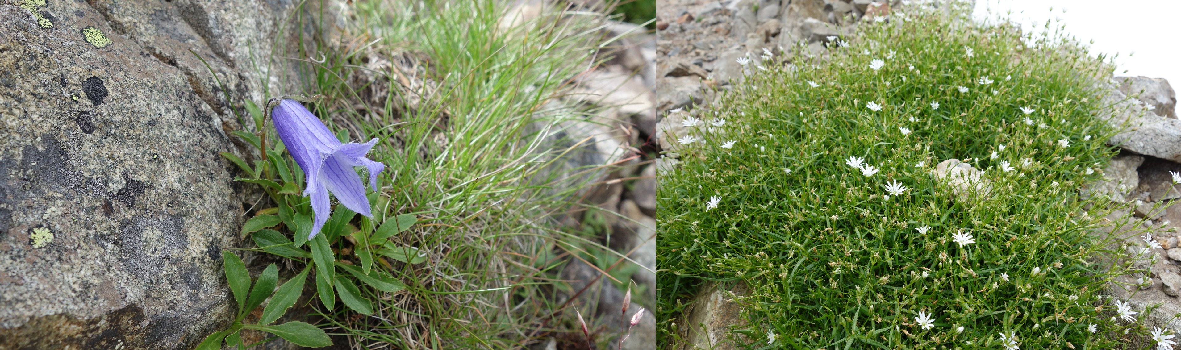 高い山では、窪地や稜線の風下側など、雪が吹き溜まる雪田(せつでん)と呼ばれる環境があり、そこに生育する植物を雪田植物と言います。