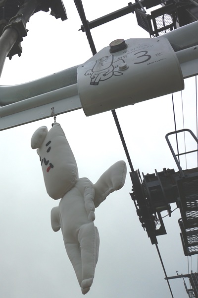 八方尾根を上る場合、山麓からゴンドラとリフト2基を乗り継いで行きますが、ゴンドラを下りて1つ目のリフト(アルペンクワッドリフト)では、白馬村キャラクターの「ヴィクトワール・シュヴァルブラン・村男Ⅲ世」の取り付けられた搬器(人が座る椅子)があります。座ることができるかな?