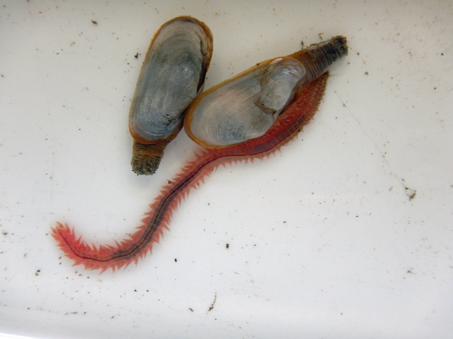 干潟から出てくる生き物はソトオリガイやゴカイなどで、