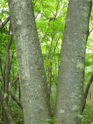 数あるブナの木の中で、この木だけが、爪痕が多いようです。