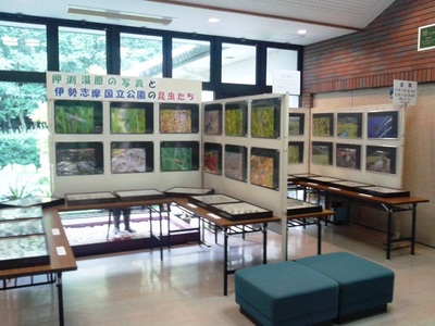3.南伊勢町「愛洲の館」ロビーで押渕湿原の写真と伊勢志摩国立公園の昆虫標本の展示を行いました。