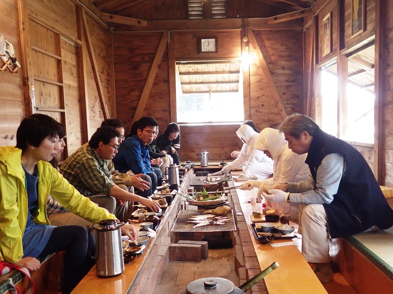 海女小屋で食事をしながら海女さんとのふれあいや、