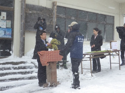 当日は、雪混じりの強風が吹く中、約20名が出席しました。