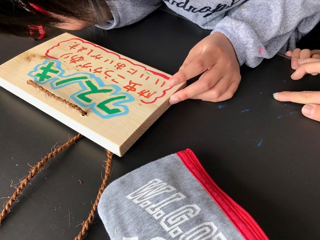 最後の5回目の授業では、樹名板を作って実際に校庭の木に取り付けました。