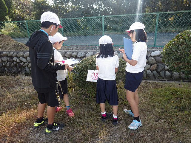 校庭の樹木を調査して、記録した成果を発信する活動を5回にわたって行いました。