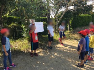 調査した校庭の木の名前や特徴をクイズで伝える活動を行いました。
