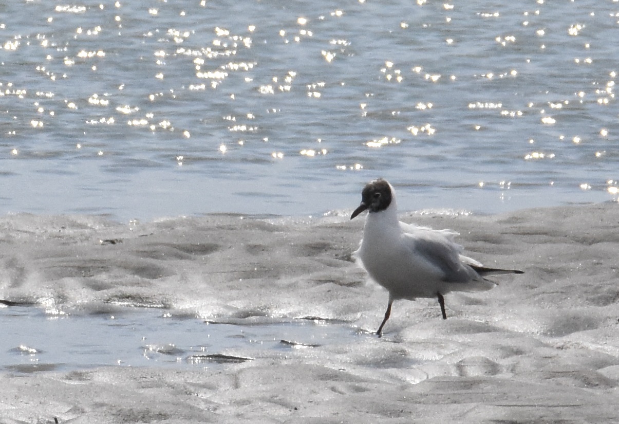 頭が黒くなったユリカモメ夏羽