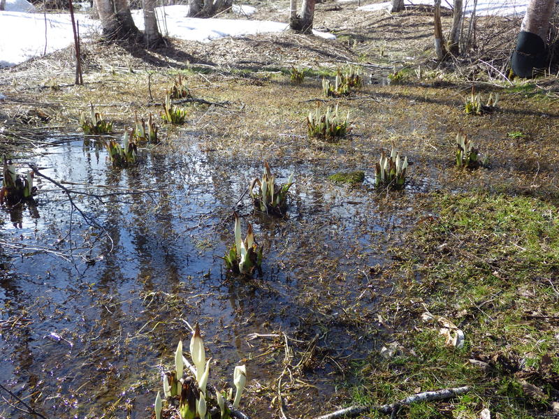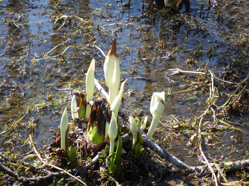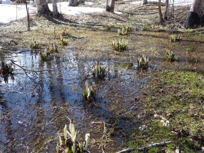 咲き始めたミズバショウを発見して歩くのも楽しいですよ。