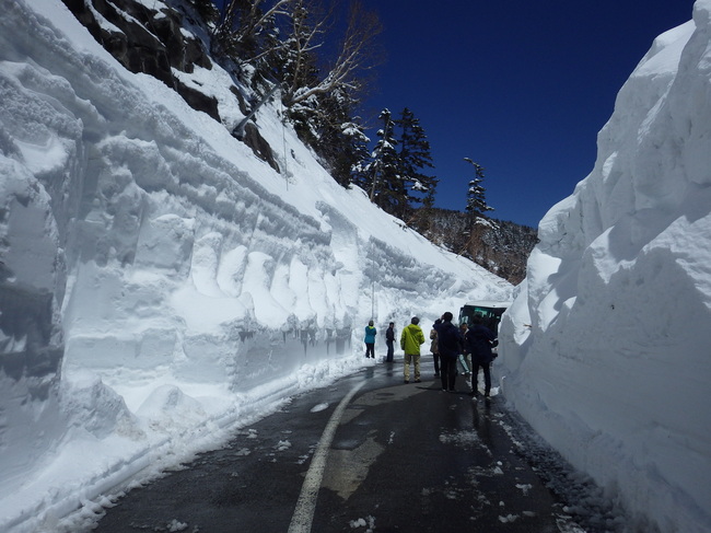 昨年に比べると今年は雪が多く、なかなか見応えのある雪壁になっています。