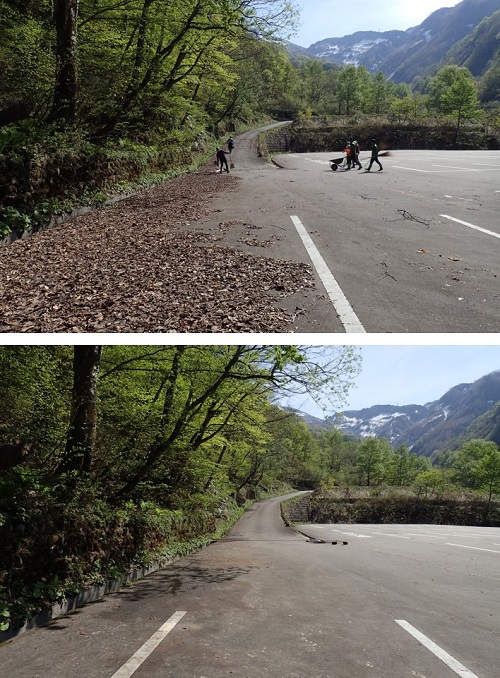 駐車場もこの通り!  (上:作業前、下:作業後。5月21日撮影)