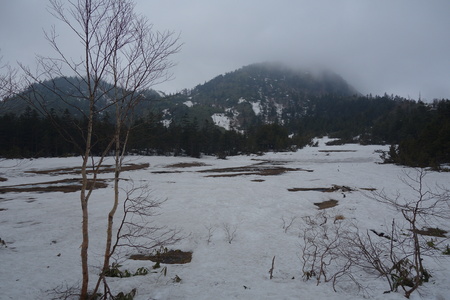 <志賀高原自然保護官事務所のすぐ近くにある蓮池。一面を厚く覆っていた雪はほとんど溶けました。>