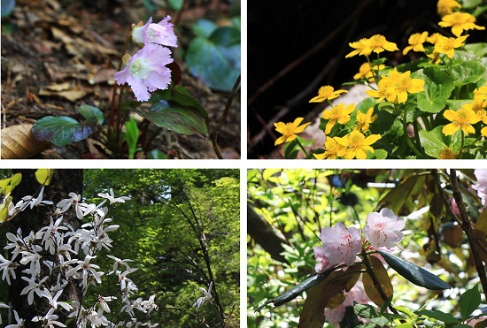 こんにちは。 みなさん「鳴谷山(なるたにやま)」ってご存知ですか? この山は石川県白山市白峰にあり、白山の北西方向に位置する標高1,596mの山です。 標高はそれほど高くありませんが、この山はとにかく見所いっぱいのとても楽しい山です。 まずは花! チゴユリ、イワウチワ、ミズバショウ、リュウキンカ、オオカメノキ、ムラサキヤシオツツジ、タムシバ、ホンシャクナゲ、ミツバオウレンなどたくさんの花が咲き乱れていました!  (左上:イワウチワ 右上:リュウキンカ 左下:タムシバ 右下:ホンシャクナゲ 5月30日撮影)