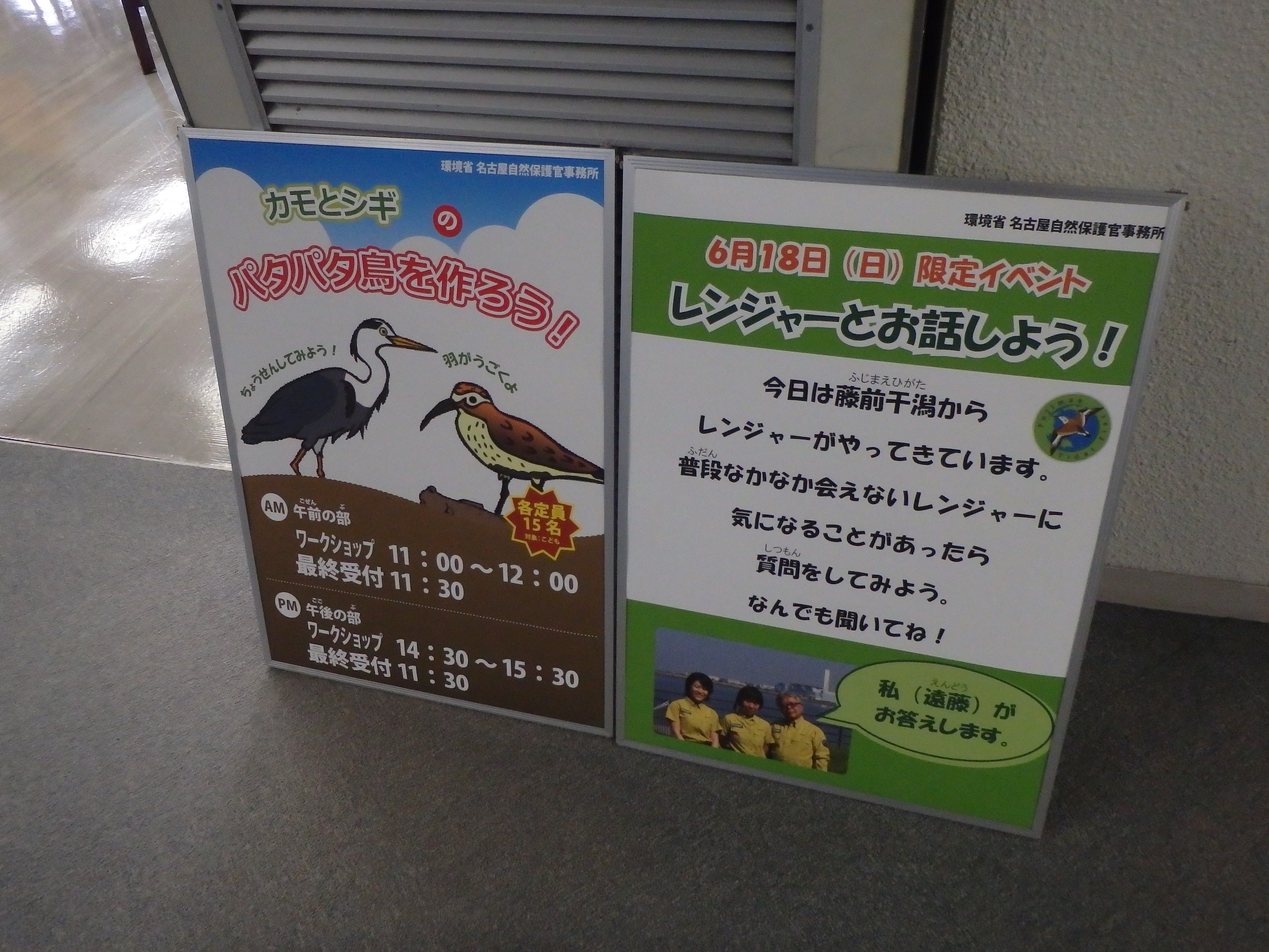 現在開催中のレンジャー写真展の会場で、6月18日(日)限定イベントとして、碧南海浜水族館に併設する碧南市青少年海の科学館に、私たち、名古屋自然保護官事務所のレンジャーとアクティブ・レンジャーが行ってきました。
