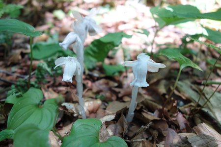 <ギンリョウソウ。漢字では「銀竜草」を当てるようです。腐生植物(成長に必要な養分を、共生する菌類から得て生活する植物)。>