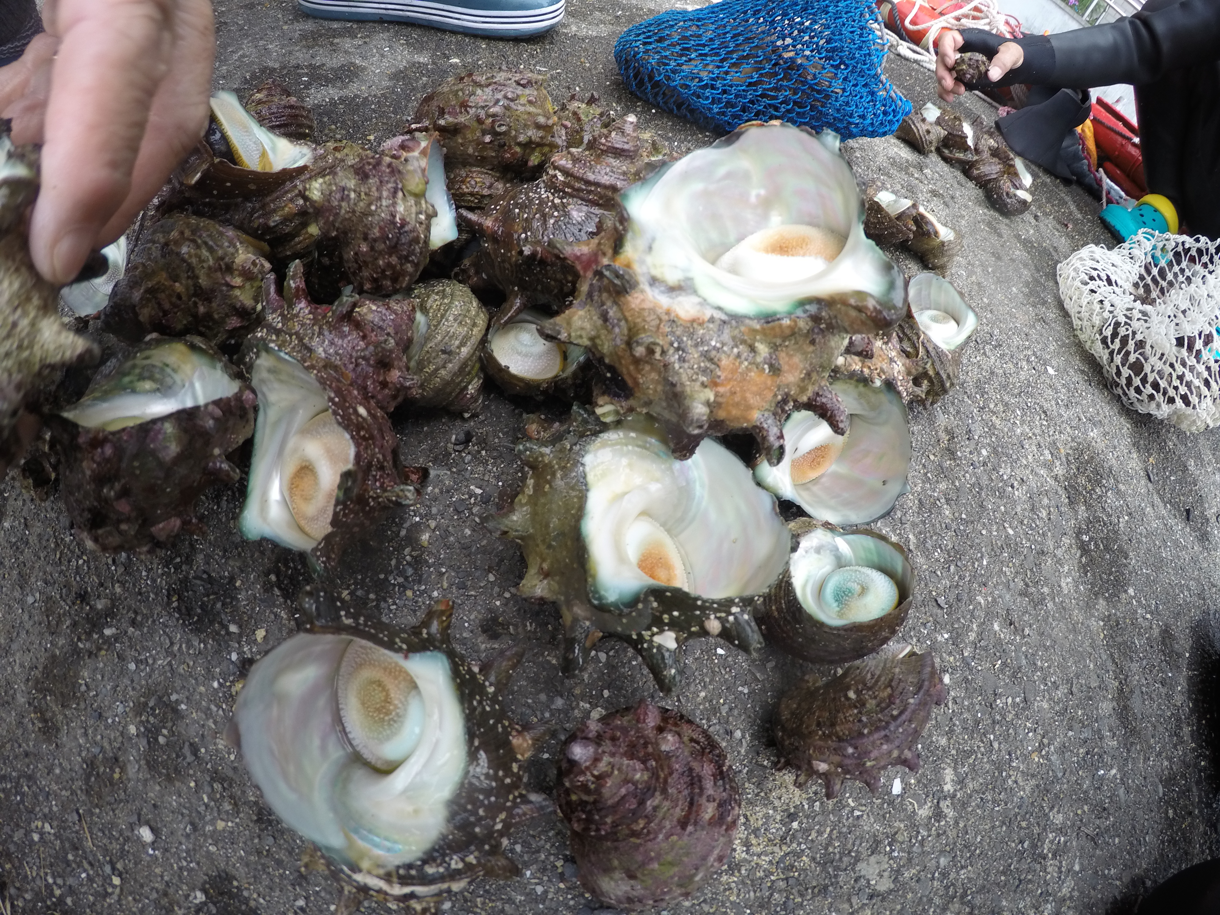 とれたものを見てみると、サザエがダントツの1位。ほかにも、アワビに似ているトコブシやタコなども捕まりました!