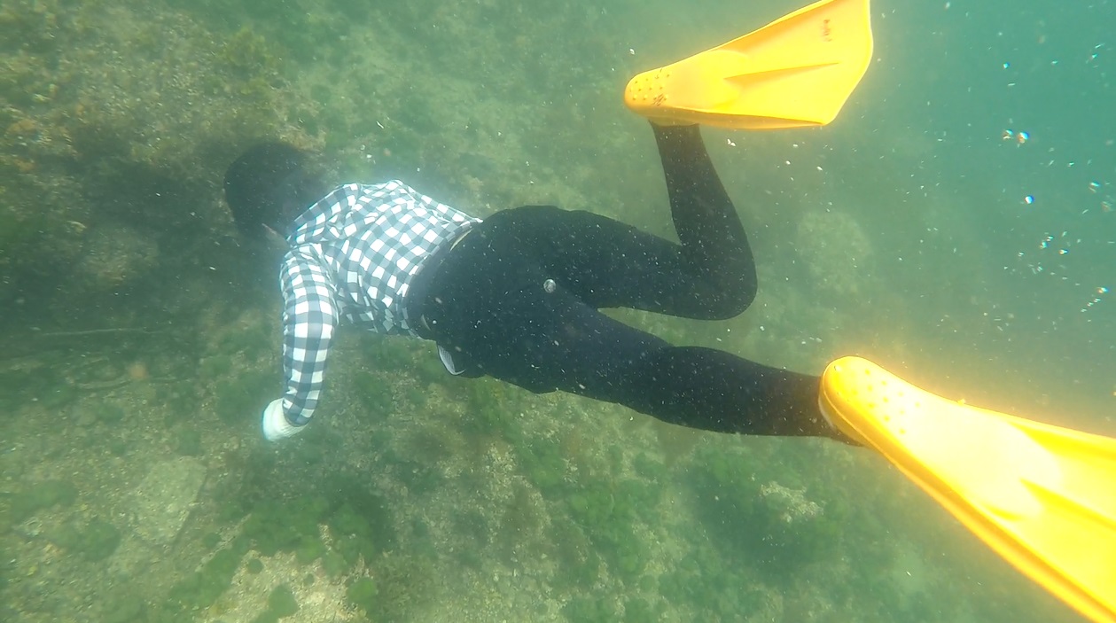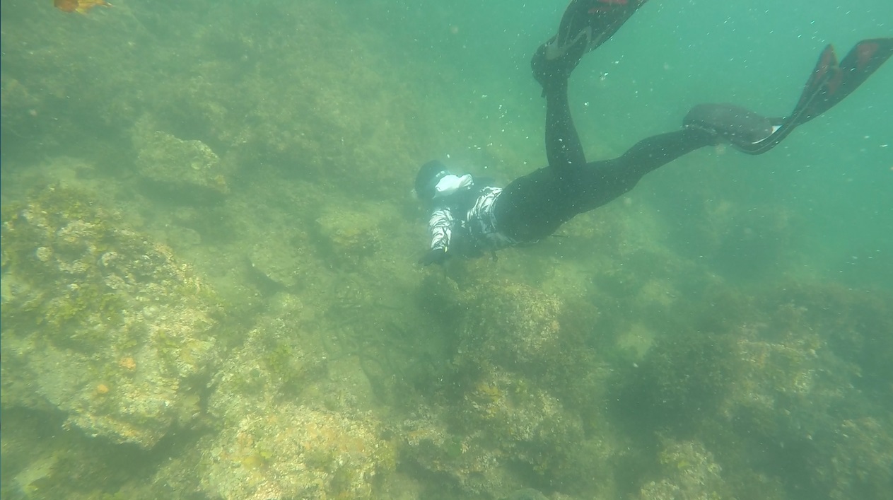 優しい海女さんにフォローしていただきつつ、漁スポットに向かいました。