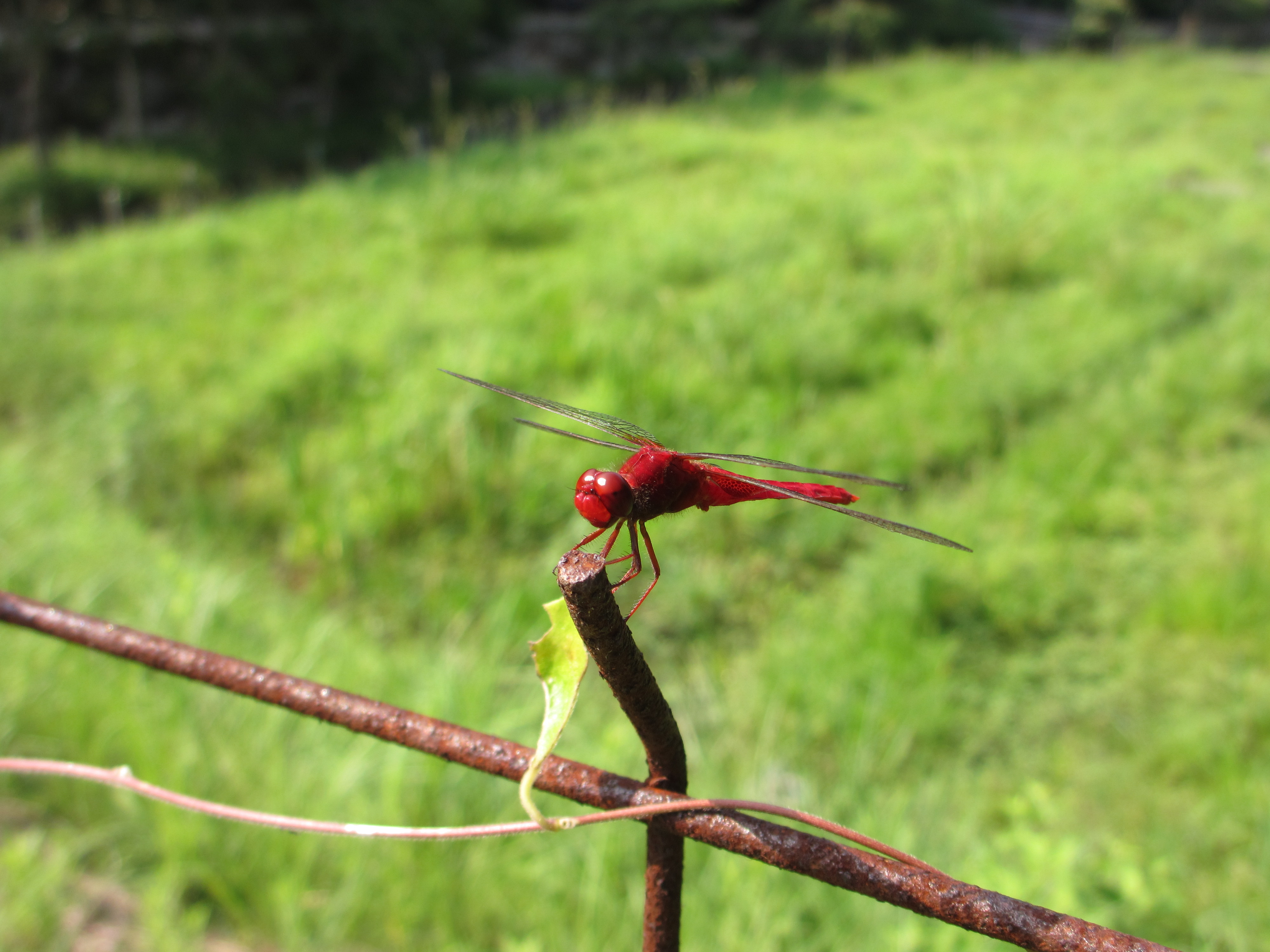 こちらは、鮮やかな赤色のショウジョウトンボ。