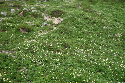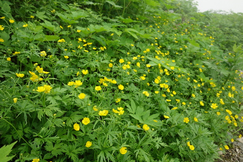 <ミヤマキンポウゲの群落。白馬鑓温泉小屋付近。>