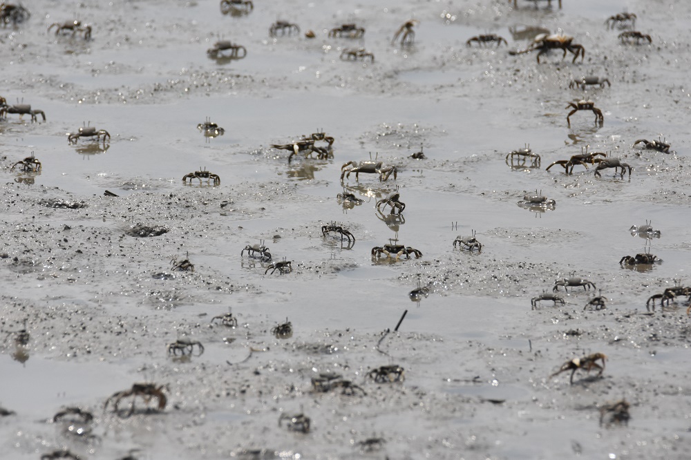 (干潟が現れるとたくさん出てくるヤマトオサガニたち)