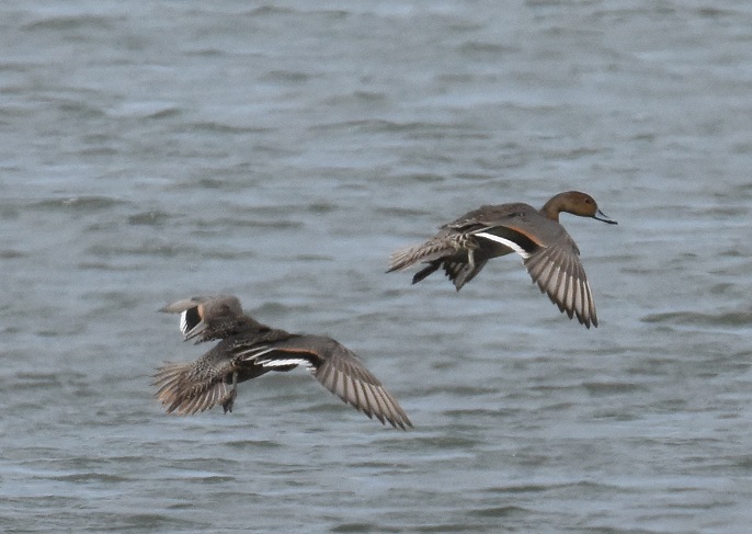 ※エクリプス:エクリプスとは、主に繁殖期後半に風切が一斉に抜けて飛べなくなる時期に、外敵から身を守るためにオスがメスと同じような地味な羽色になることを言う。日本に飛来する頃には次の繁殖に向けて徐々に繁殖羽へと変化している途中であることが多く、まだ地味な羽の個体が多い。