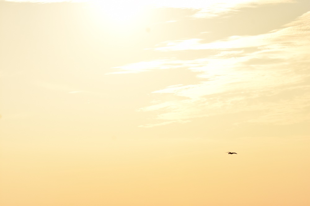 そうすると、夕日を背景に、渡り鳥たちのシルエットが浮かび上がります。