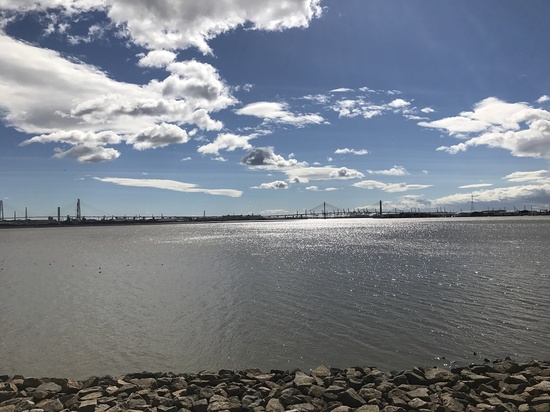 (台風一過の藤前干潟。まだ潮のひき始めのため、干潟はあまり見えていません。)