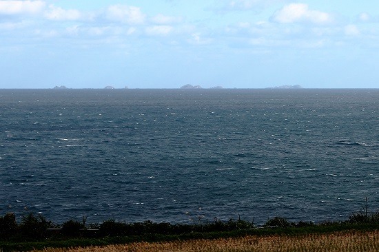 (水平線に浮かぶ七ツ島の島影。輪島から撮影)