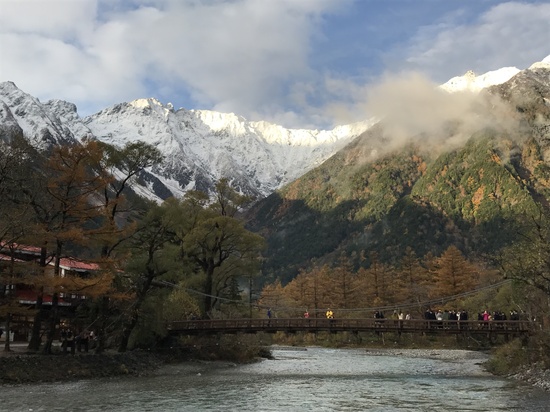 上高地から見える穂高連峰も冠雪しています。