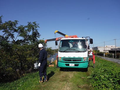 堤防上に愛知県産業廃棄物協会の方がこのような重機を用意してくれました。