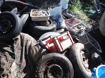 参加者の方々が一生懸命活動した結果、可燃ゴミ1,860kg、不燃ゴミ1,610kgのゴミが回収されました。その他に、写真に写っているタイヤ等、ゴミ処理施設に直接搬入できなかったゴミもあります。参加されたみなさん、ありがとうございました。