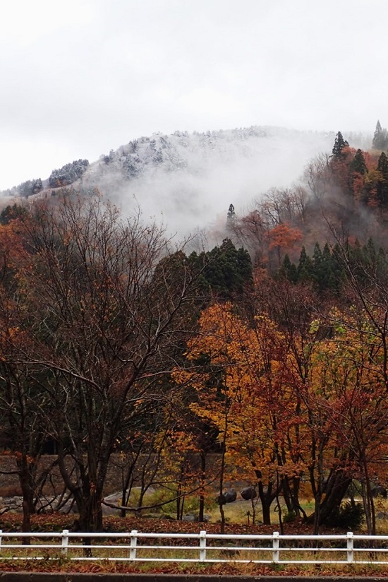 (事務所お向かいにある山。上の方が雪化粧。11月16日撮影) 昨日16日は午前中、白山自然保護官事務所のある石川県白山市白峰でもあられ、みぞれが降りました。気づけば事務所のお向かいにある標高1,000mほどの山が雪化粧! 冬です! 同日正午には石川県白山市の白山公園線市ノ瀬-別当出合間が冬期通行止めとなりました。白峰から市ノ瀬までの区間も雪が積もればその時点で通行止めになりますので、最新の情報をご確認ください。 そして、今日は白山登山口のある別当出合付近で現場確認作業があったため、道路管理者の許可を得て別当出合まで行ってきました。 が、別当出合へ行ってびっくり! 雪!雪!!雪!! 一面銀世界が広がっていました。  (銀世界!別当出合付近で11月17日撮影) さらに雪の上には動物の足跡が! こちらはノウサギ♪  (ノウサギの足跡。別当出合で11月17日撮影) 進行方向前方についた大きい跡が後ろ足で、小さな跡が前足です。 跳び箱を跳ぶように足を動かすので、このような不思議な跡になります。 こちらはテンのものと思われる足跡!  (たぶんテンの足跡。別当出合で11月17日撮影) テンはイタチの仲間で体長は40~50cmほどの動物です。
