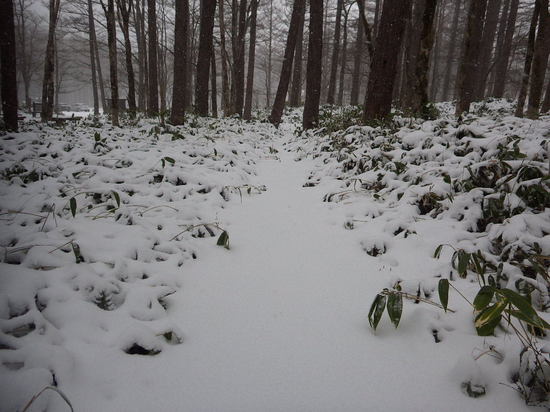 16日は前日から降り続いた雪で、すっかり冬景色の中、閉所に向けた作業を行いました。