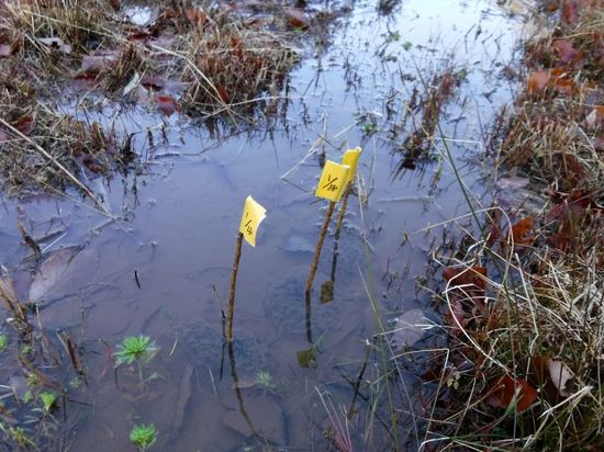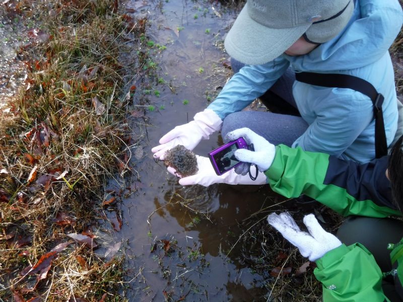 まだ寒い冬の水辺ですが、アカガエルの卵を探しに出かけてみませんか?