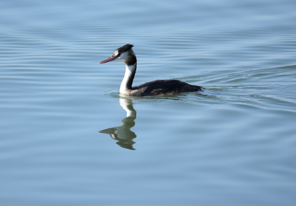 (スラッとした首が綺麗なカンムリカイツブリ。)