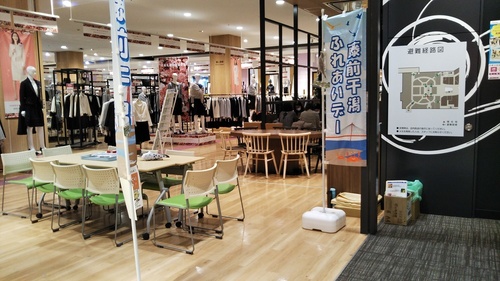 広いテーブルと机を2つお借りし、2Fのイオンドリップカフェコーナーの一角にて実施しました。
